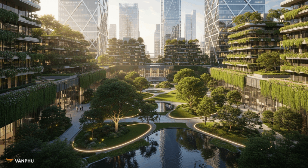 In a context where the world is increasingly concerned about environmental issues, the concept of “sustainability” is no longer a trend but has become an urgent requirement. Particularly in the real estate sector, the development of green, environmentally friendly projects is receiving special attention. Van Phu, with its philosophy of “dedication” and long-term vision, has been and is pioneering in creating sustainable living values, bringing benefits not only to residents but also to the community and the planet.