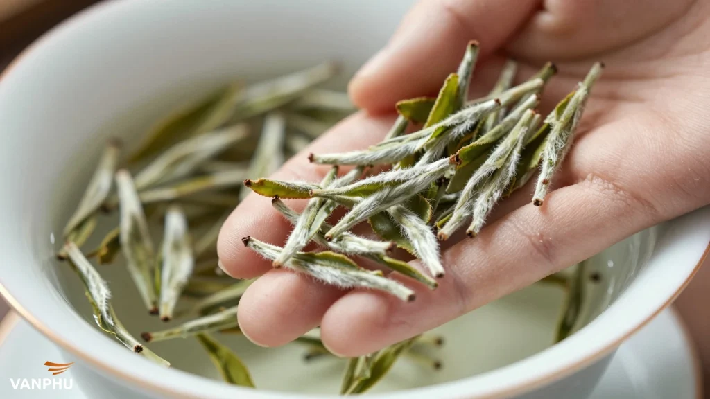 - Trà Bạc Kim (Silver Needle - Bạch Hào Ngân Châm): Đây là loại trà trắng cao cấp nhất, chỉ làm từ những búp trà chưa hé nở. Nó nổi tiếng với hương thơm ngọt ngào, thoang thoảng mùi hoa với chút mật ong và hậu vị mượt mà [3]. Nhiệt độ lý tưởng: 75-80°C, thời gian ủ: 5-6 phút, lượng trà: 1.5-2 muỗng cà phê cho mỗi tách [4].